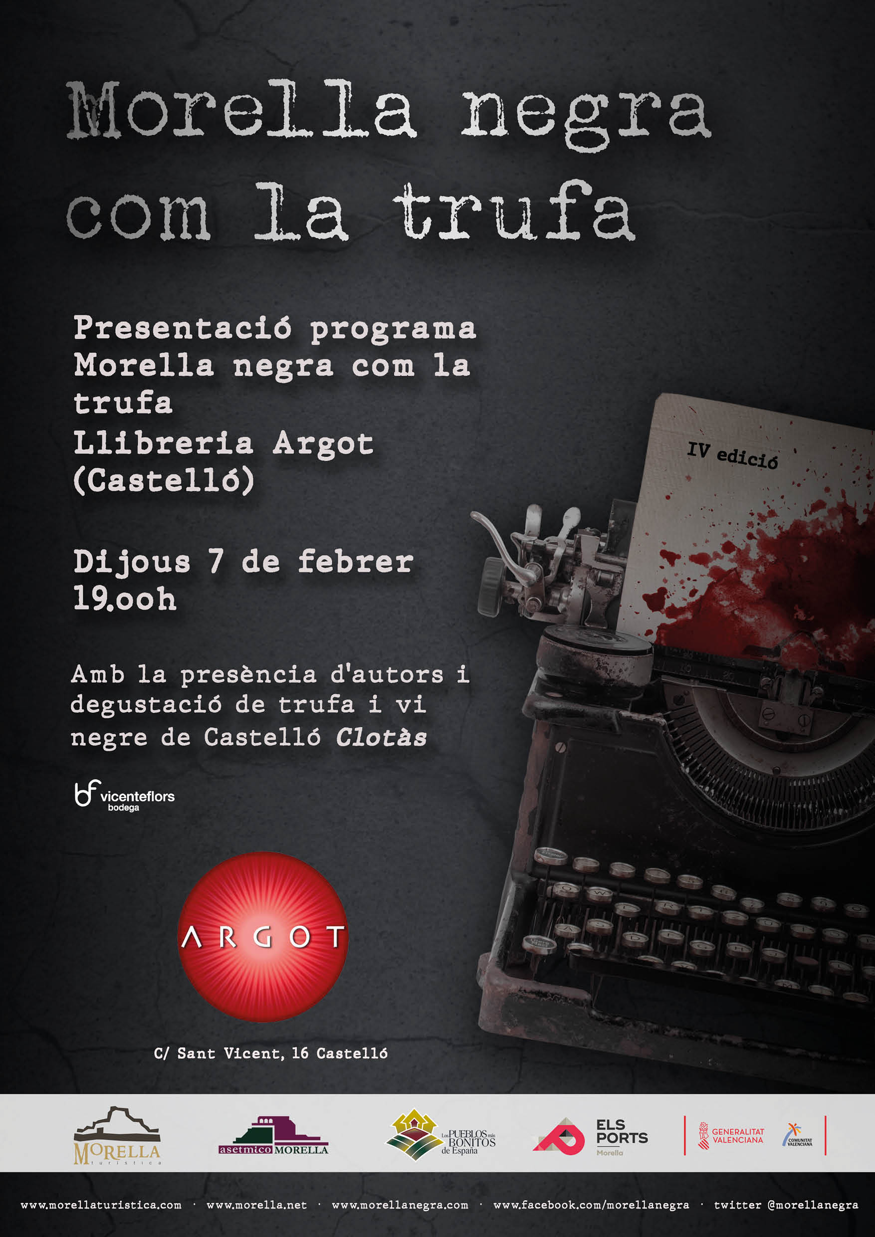 El pròxim dijous 7 de febrer a les 19:00 presentarem en la llibreria Argot el festival Morella Negra Com la Trufa.