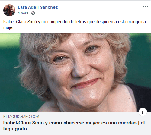 La nostra companya Lara Adell en la seua finestra a www.eltaquigrafo.com ha escrit unes precioses paraules per Isabel-Clara Simó, les compartim plenament des de Morella Negra i La Canyeta Literària.