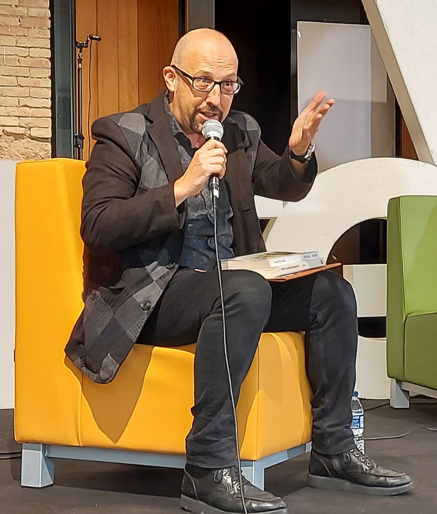Santiago Álvarez, més que un ambientador cultural és un incentivador cultural, transmet cultura. És escriptor, músic, porte clubs de lectura, part fonamental de VLCnegra o el festival Torrent Històrica de novel·la històrica…. i moltes coses més. Ha participat dues vegades a Morella Negra Com la Trufa, en 2018 i en el 2020, en aquest últim any crec que es va alçar poc de la cadira de moderador, ho va fer en la taula ”Art de novel·la negra” i “Distopies negres” a més a més de fer al Masterclass de Cinema Negre Americà. Com ja hem dit anteriorment Santiago Álvarez s’ha convertit en un gran col·laborador de Morella Negra del que no volem prescindir de cap manera.