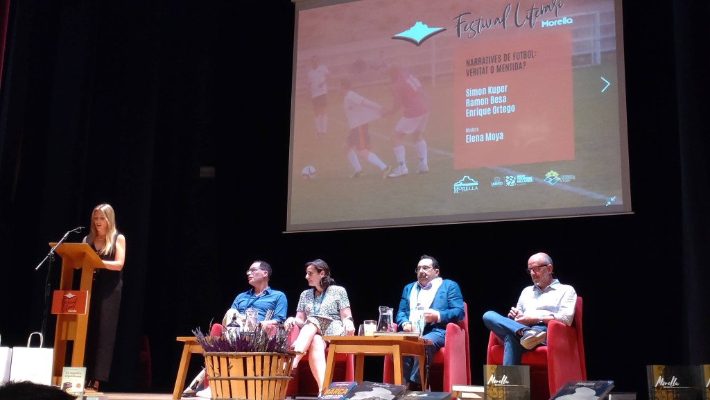 En el Panel de «Narrativas del Fútbol, ¿Verdad o Mentira?» con Simon Kuper, Ramón Besa y Enrique Ortego moderados por Elena Moya vimos que el fútbol actual solo es juego los 90′ del partido, fuera de eso todo es negocio. También que el Real Madrid ha impuesto su narrativa en la que el título importante es la «Champions Ligue» y que lo importante es la «Victoria» independientemente del juego o del estilo frente a la narrativa del Barça donde lo importante es «El Juego»