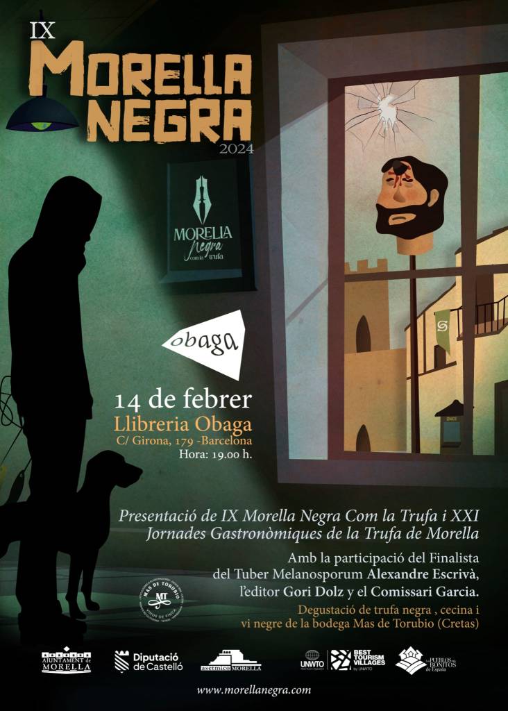 El próximo miercoles 14 de febrero tendrá lugar la presentación en Barcelona de la IX edición de Morella Negra Com la Trufa. En la «Llibreria Obaga», calle Girona 179, a partir de 19.00 daremos a conocer el programa de esta nueva Morella Negra con una degustación de Trufa Negra y Vino «negro» de la «Bodega Mas de Torubio» que tiene sus viñas en Cretas, en la comarca del Matarraña.