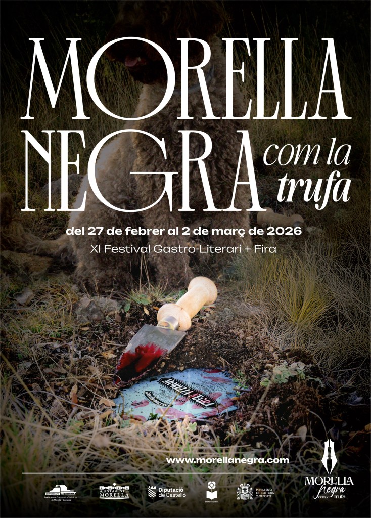 Morella Negra Como la Trufa 2026 tendrá lugar entre 27 de febrero y el 2 de marzo. La cita contará con importantes autores y autoras de novela negra española y un completo programa de mesas literarias junto con la degustación de pinchos de trufa preparados por los restaurantes de la Asociación de Empresarios Turísticos de Morella y Comarca (ASETMICO).