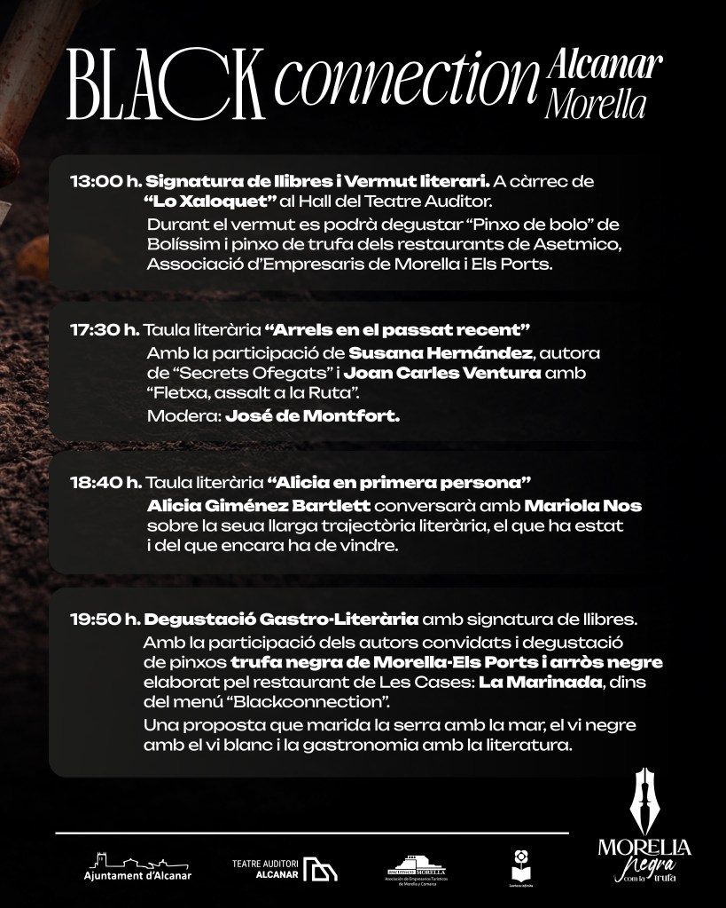 Amb la participació dels autors convidats i degustació de «pintxos» trufa negra de Morella-Els Ports i Arròs Negre elaborat pel restaurant de Les Cases: La Marinada, dins del menú “Blackconnetion”.