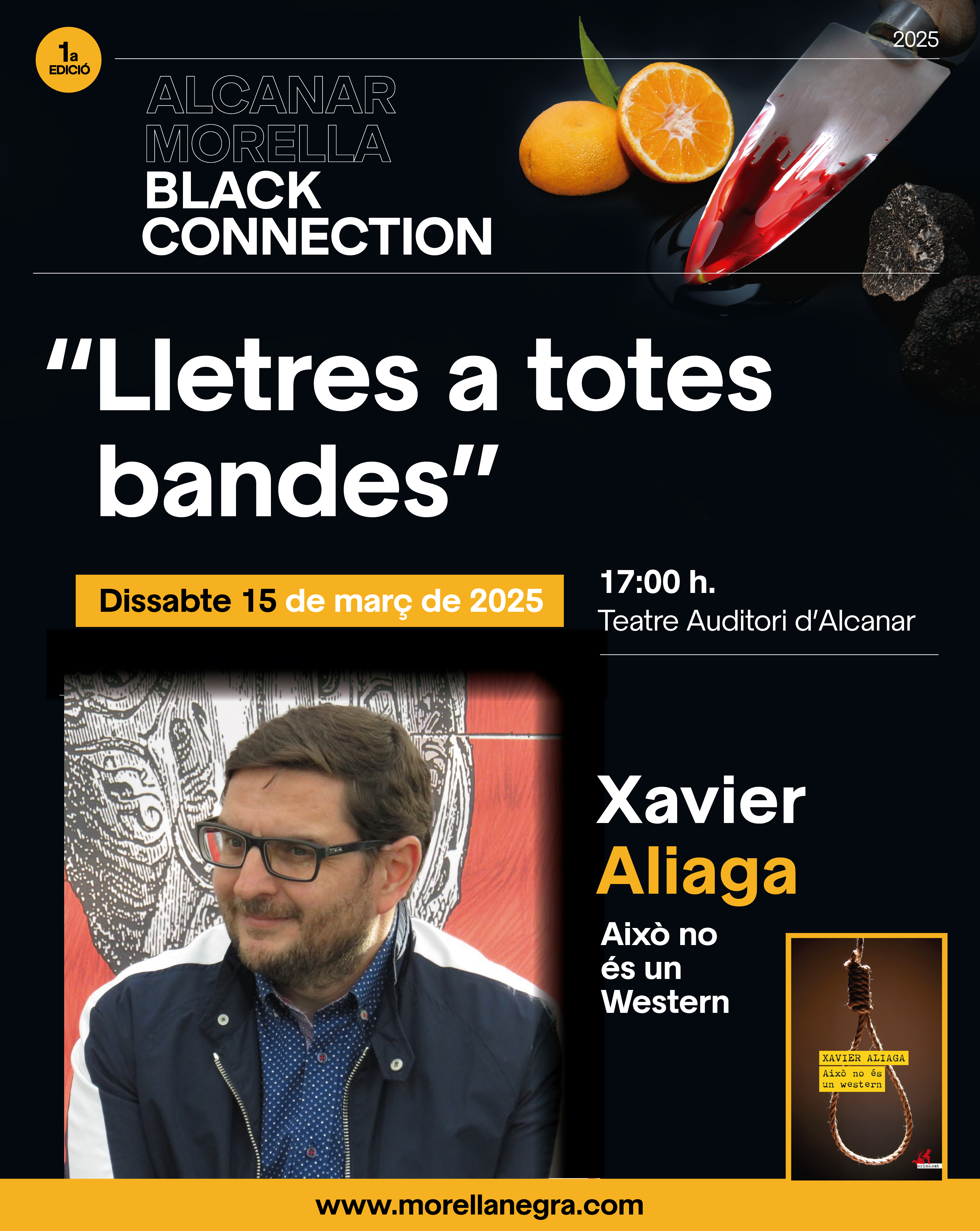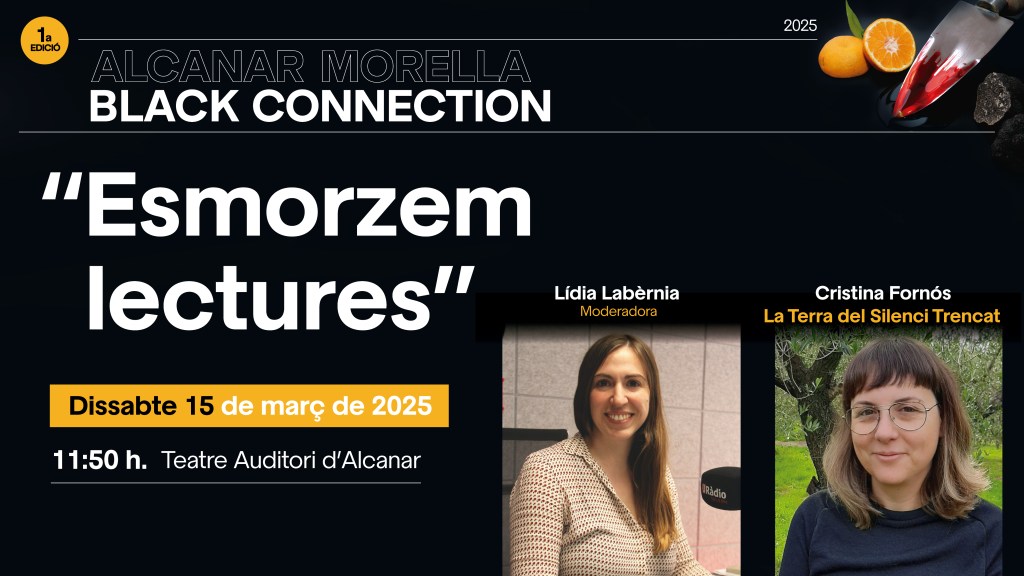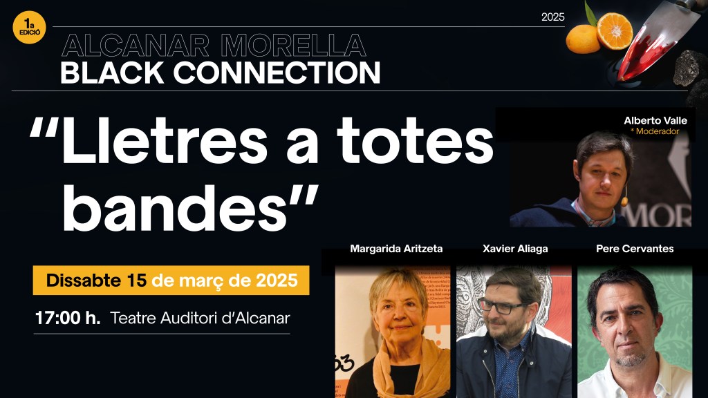 Alcanar-Morella #Blackconnection començarà a les 11:30 del 15 amb els parlaments institucionals per part del Comissari Garcia de Morella Negra, de Xavi Barreda, regidor de Cultura de l’Ajuntament d’Alcanar i Mariola Nos gestora cultural del Teatre Auditori d’Alcanar. En finalitzar els parlaments tindrà lloc la presentació de tres llibres de proximitat en el format “Esmorzem lectures”, presentacions individuals d’uns 20 min. en format de conversa entre l’autor i el moderador.